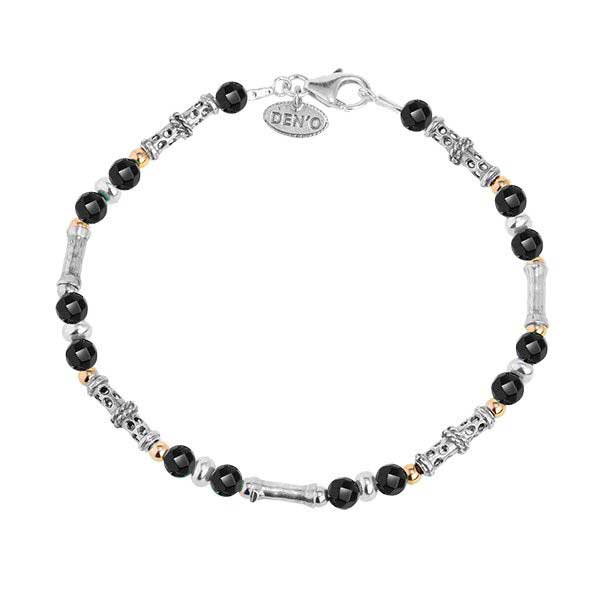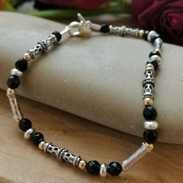 Браслет из серебра 925 пробы, вставка - голдфилд 3 мм, граненый оникс 5 мм, Средний вес изделия 6,6 гр. Производство Израиль.