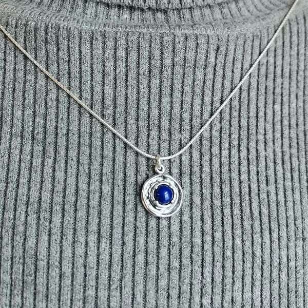 Колье из серебра 925 пробы. Вставка лазурит. Размер вставки 8 мм. Размер декоративной части кулона 13 мм, длина кулона 20 мм, Длина цепи 43 см.Средний вес изделия 5,4 гр. Производство Израиль.