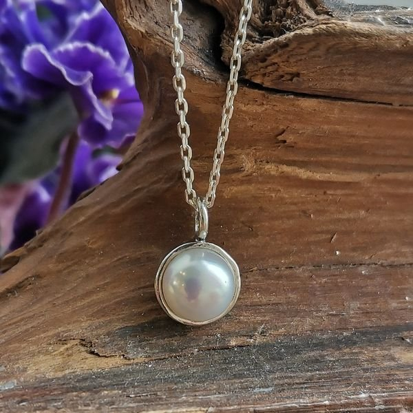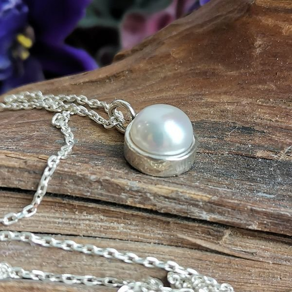 Колье из серебра 925 пробы, вставка жемчуг. Диаметр вставки 8 мм. Длина кулона 15мм. Средний вес изделия 1,6 гр. Производство Израиль.