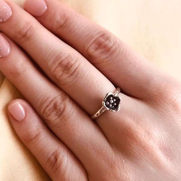 Кольцо из серебра 925 пробы без вставок. Ширина шинки кольца 2 мм., диаметр цветка 9 мм. Средний вес изделия 2,25 гр. Производство Израиль.