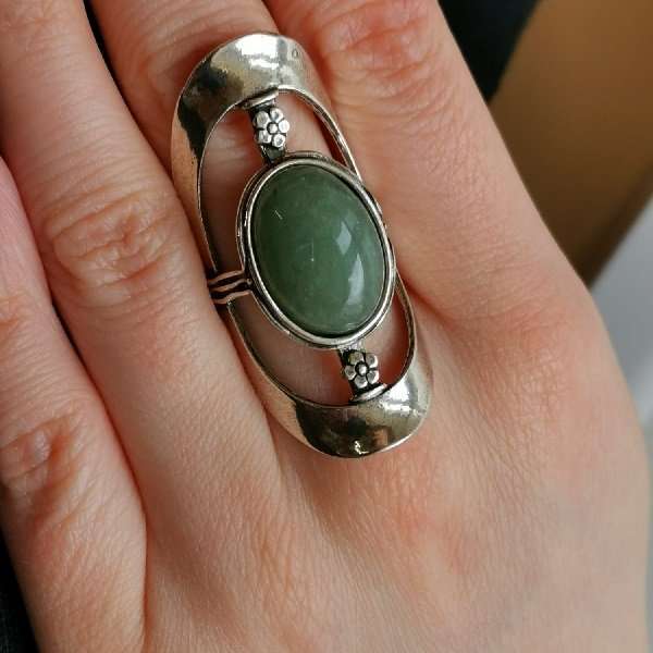 Кольцо из серебра 925 пробы, вставка авантюрин. Размер вставки: овал 13 х 18 мм. Длина верхней части кольца 45 мм, ширина 21 мм, ширина шинки кольца 4 мм. Средний вес изделия 11 гр. Производство Израиль.