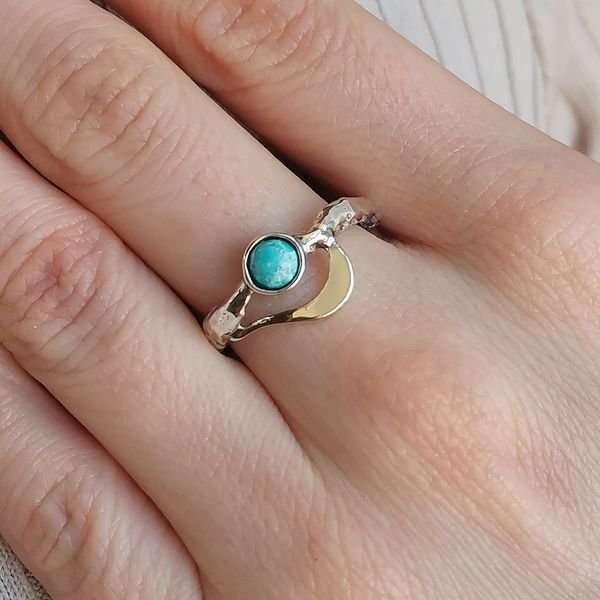 Кольцо из серебра 925 пробы, вставка пластина из золота, бирюза 5 мм. Размер верхнейчасти кольца 14х10 мм. Ширина шинки изделия 2 мм. Средний вес изделия 3,4 гр. Производство Израиль.