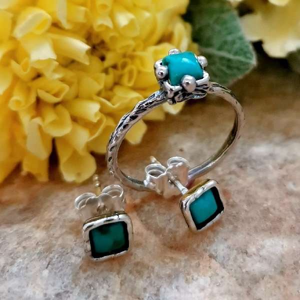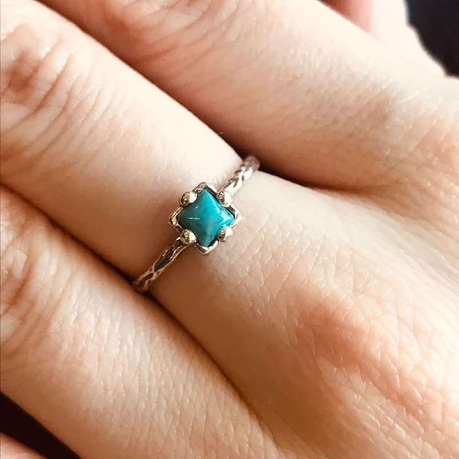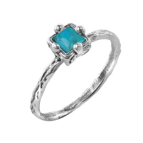 Кольцо из серебра 925 пробы, вставка бирюза. Размер вставки квадрат 4х4 мм. Ширина шинки кольца 2 мм. Размер художественного элемента 6х6 мм. Средний вес изделия 1,5 гр. Производство Израиль.