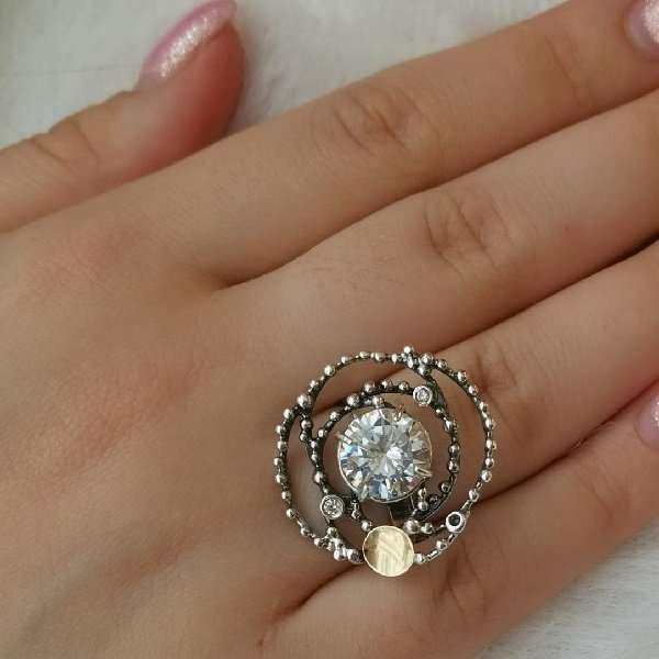 Кольцо из серебра 925 пробы, вставка пластина из золота 5 мм, куб.циркон. Диаметр вставок куб.циркона 3, 10 мм. Ширина верхней части кольца 25 мм. Ширина шинки 4 мм. Средний вес изделия 7,3 гр. Производство Израиль.