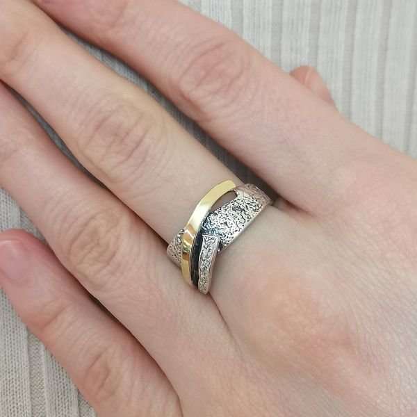 Кольцо из серебра 925 пробы, вставка золото, куб.циркон. Диаметр вставки 2, 1,5 мм. Ширина шинки 3 мм. Ширина верхней части кольца 10 мм. Средний вес изделия 4,2 гр. Производство Израиль.