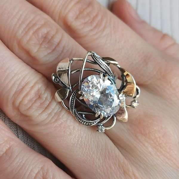 Кольцо из серебра 925 пробы, вставка пластина из золота, куб.циркон. Размер вставок 14х10 и 2,5 мм. Ширина шинки изделия 2 мм. Средний вес изделия 7,4 гр. Производство Израиль.