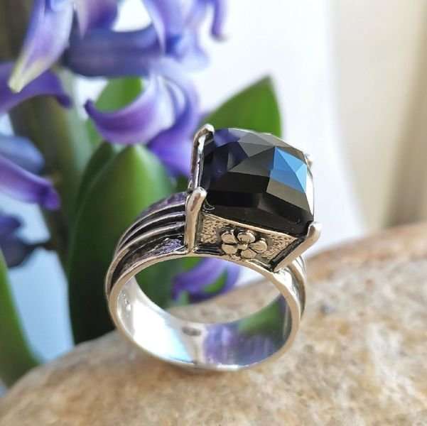Кольцо из серебра 925 пробы, вставка граненый оникс . Ширина шинки 7мм, Размер вставки 12х12 мм. Средний вес изделия 11 гр. Производство Израиль.