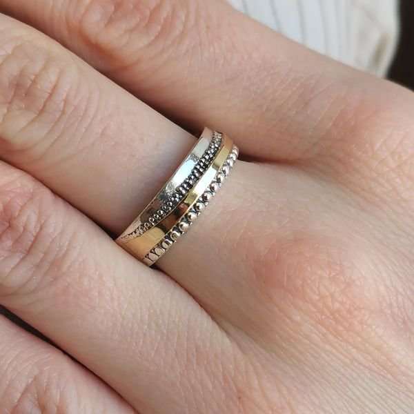 Кольцо из серебра 925 пробы, вставка пластина из золота. Ширина кольца 6 мм. Средний вес изделия 4,9 гр. Производство Израиль.