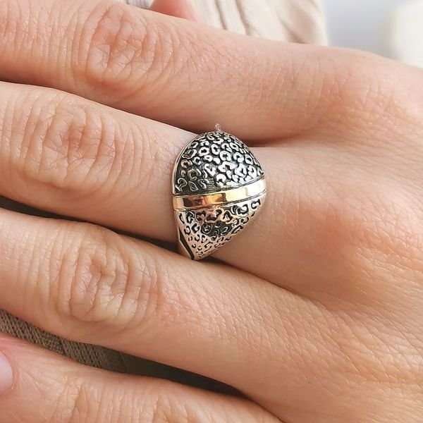 Кольцо из серебра 925 пробы, вставка пластина из золота. Ширина шинки кольца 3 мм. Ширина верхней части 14 мм. Средний вес изделия 3,7 гр. Производство Израиль.