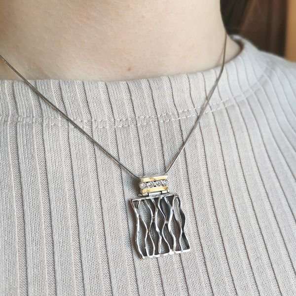 Кулон из серебра 925 пробы, золотая пластина, кубический циркон. Диаметр вставки 2 мм. Длина кулона 30 мм. Размер художественного элемента 20х20 мм. Средний вес изделия 4,3 гр. Цепь снейк 43 см в подарок. Производство Израиль.
