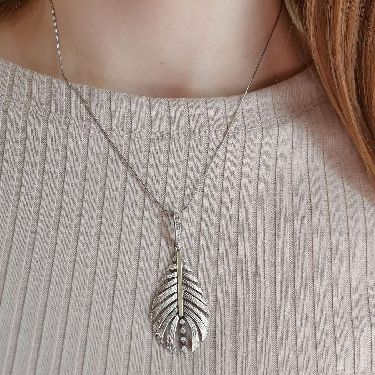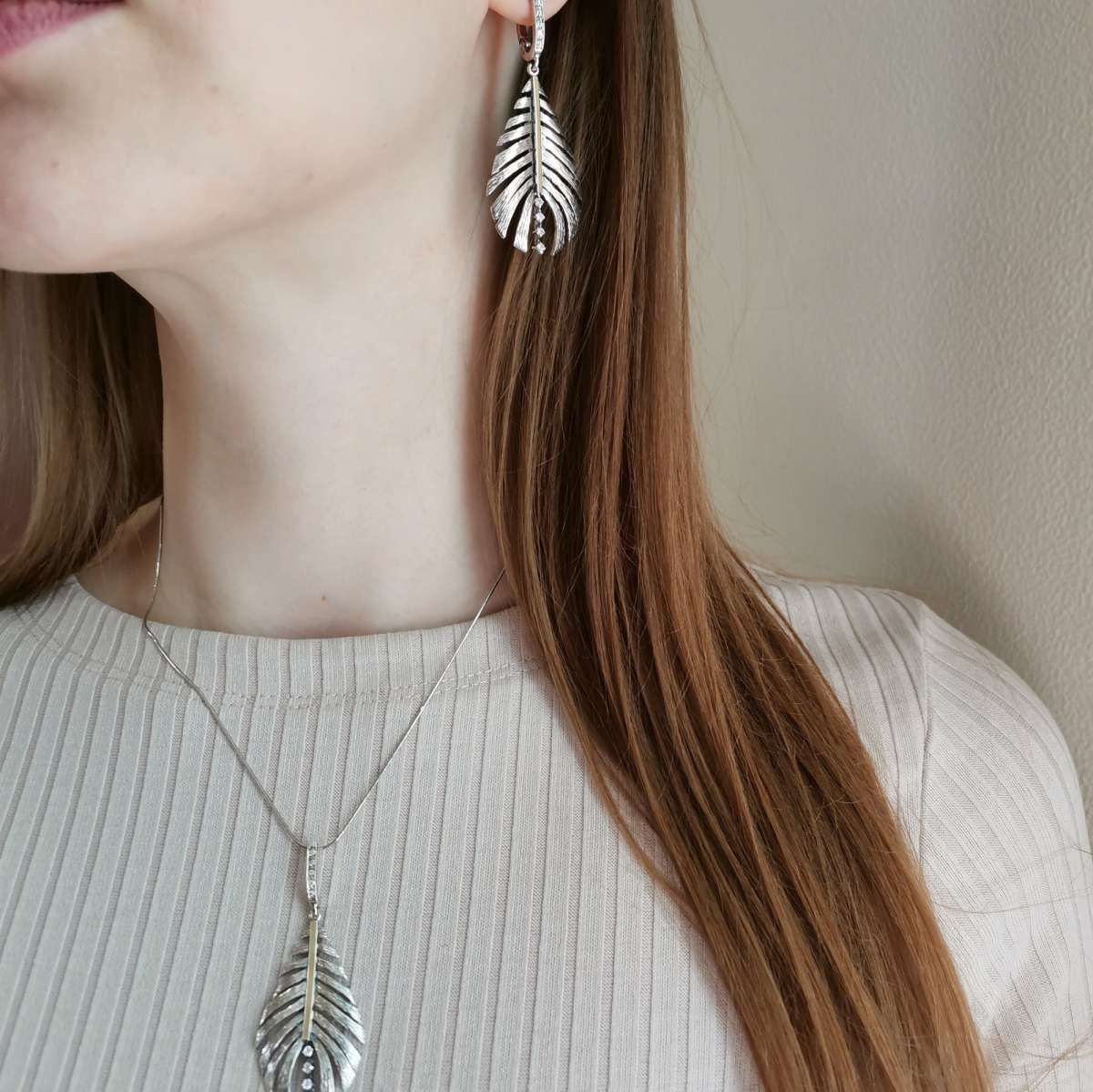 Кулон из серебра 925 пробы, вставки золотая пластина, кубический циркон. Размер циркона 2 и 1 мм. Размер художественного элемента 40х25 мм. Длина кулона 55 мм. Средний вес изделия 5,6 гр. Производство Израиль.