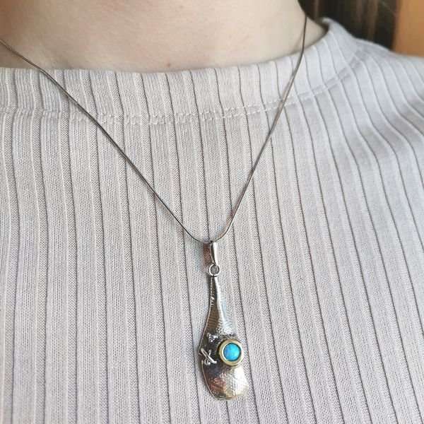 Кулон из серебра 925 пробы, вставки золотая пластина, искусственный опал, кубический циркон . Диаметр вставки опал 6 мм, циркон 1 мм. Длина кулона с подвесом 50 мм. Размер художественного элемента 40х11 мм. Средний вес изделия 3,7 гр. Цепь снейк 43 см в подарок. Производство Израиль.