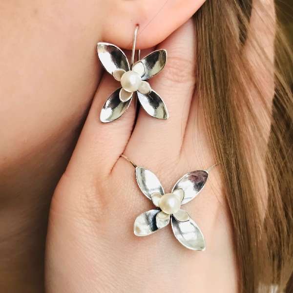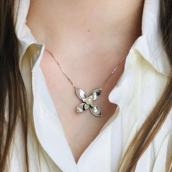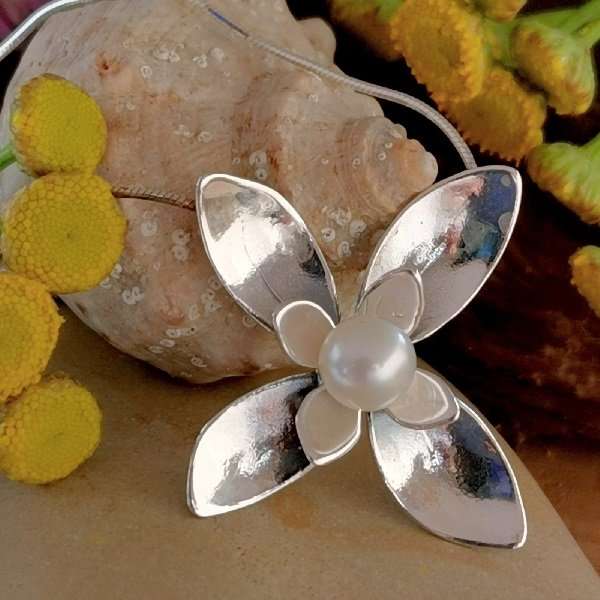 Кулон из серебра 925 пробы. Размер жемчуга 6 мм. Размер художественной части 23 х 23 мм. Средний вес изделия 2,9 гр. Производство Израиль.Цепь снейк 43 см в подарок.