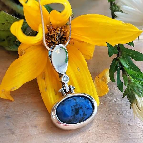 Колье из серебра 925 пробы, вставка граненый лазурит, куб.циркон. Размер вставок: лазурит овал 10 x 14 мм, диаметр вставки куб.циркон 2 мм. Длина кулона 30 мм. Средний вес изделия 5,6 гр. Производство Израиль.Издавна лазурит считается камнем искренности и дружелюбия, инструментом для белой магии. Волшебная сила минерала действует не только на владельца амулета, но на его окружающих. Камень помогает хозяину принимать верные решения, а желающих навредить владельцу лазурита минерал отводит от плохой затеи. Серебряная оправа помогает защитить владельца от порчи, зависти, интриг и прочей негативной энергии. Камень обладает необычной способностью — менять судьбы людей. Если вы хотите перемен в своей жизни, обязательно приобретите украшения с лазуритом.