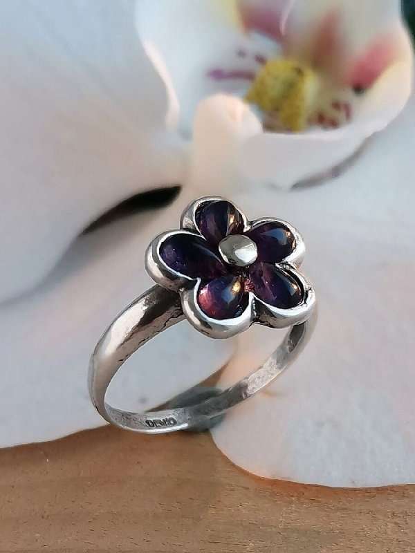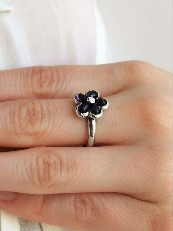 Кольцо из серебра 925 пробы, вставка аметист. Размер вставок: капля 3 х 5 мм. Ширина декоративной части кольца 13 мм, ширина шинки 3 мм. Средний вес изделия 2,8 гр. Производство Израиль.