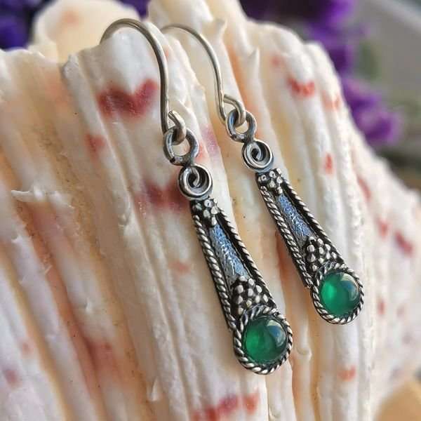 Серьги из серебра 925 пробы, вставка халцедон. Размер вставоки 4 мм. Длина серег с дужкой 30 мм. Средний вес изделия 1,7 гр. Производство Израиль.
