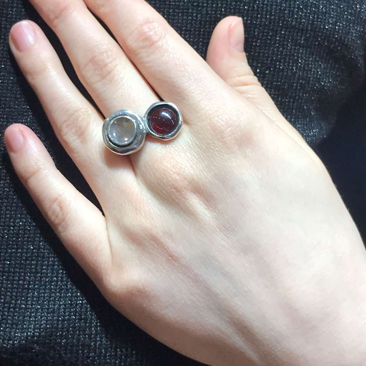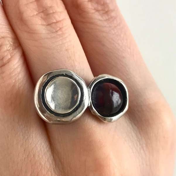Кольцо из серебра 925 пробы, вставка гранат, диаметр вставки 8 мм. Ширина верхней части кольца 15 мм, ширина шинки 3 мм. Средний вес изделия 6,57 гр. Производство Израиль.
