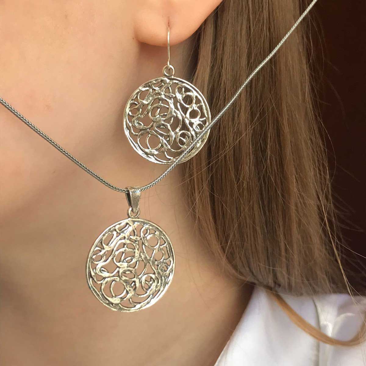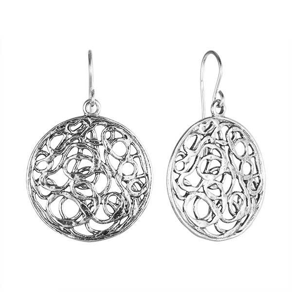 Серьги из серебра 925 пробы, без вставки. Длина серег 40 мм. Диаметр художественного элемента 25 мм. Средний вес изделия 6,6 гр. Производство Израиль.
