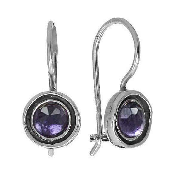 Серьги из серебра 925 пробы, вставка аметист. Диаметр вставки 5,0 мм. Длина серег с дужкой 20 мм. Диаметр художественного элемента 9 мм. Средний вес изделия 2.6 гр. Производство Израиль.