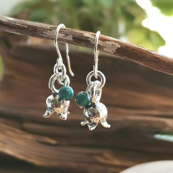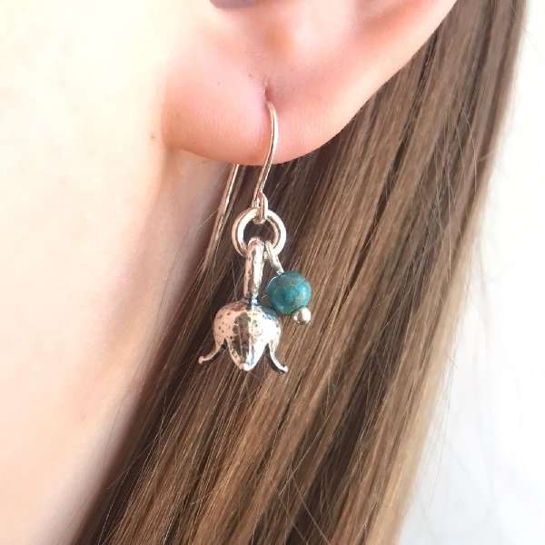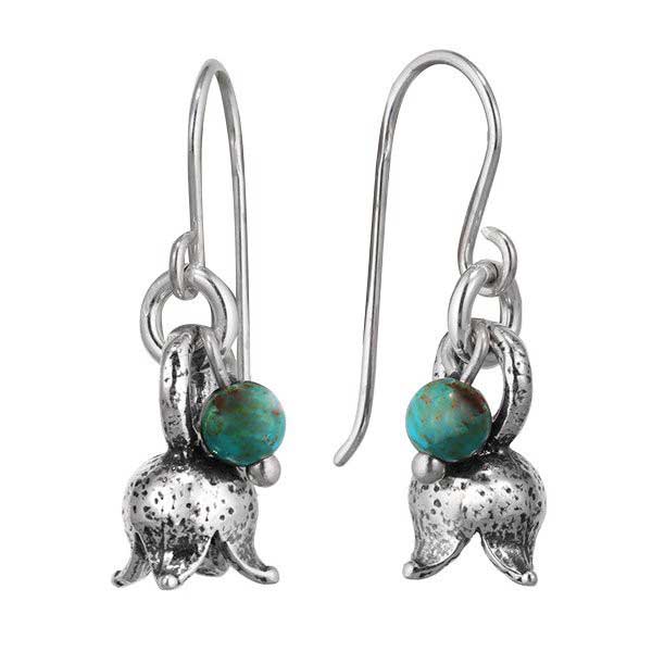 Серьги из серебра 925 пробы, вставка бирюза. Форма вставки: шар. Диаметр вставки 3 мм. Длина серег с петлей 26 мм. Размер художественной части 17х8 мм. Средний вес изделия 3,8 гр. Производство Израиль.