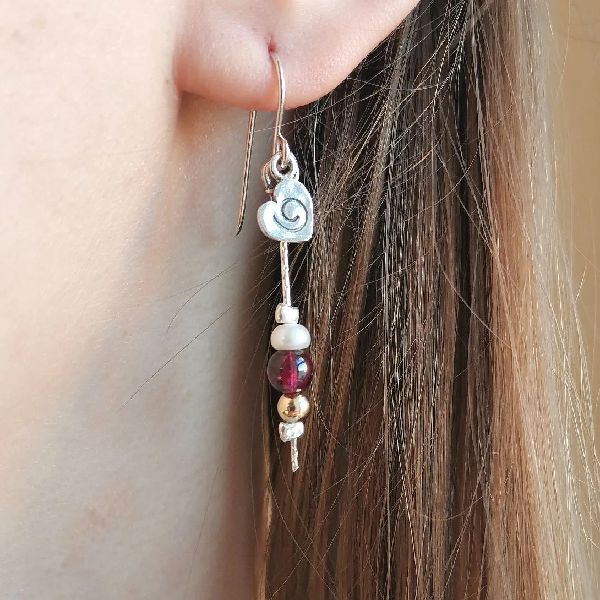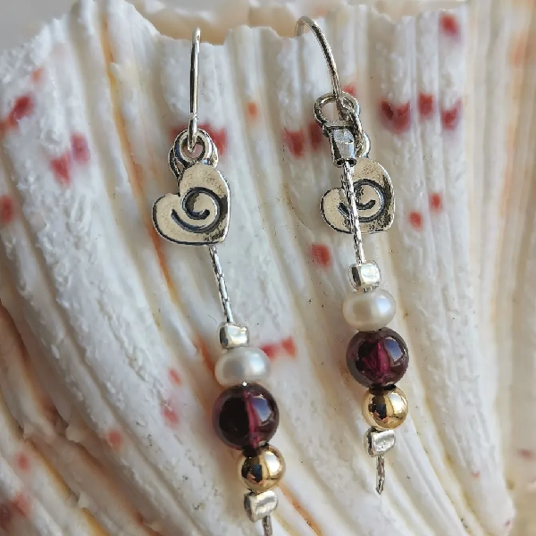 Серебряные серьги с голдфилд, жемчугом и гранатом Y01E247GR