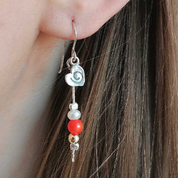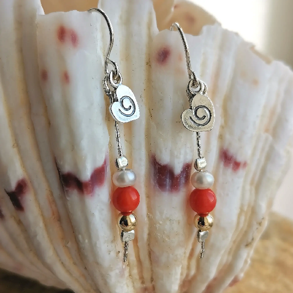 Серебряные серьги с голдфилд, жемчугом и кораллом Y01E247CR