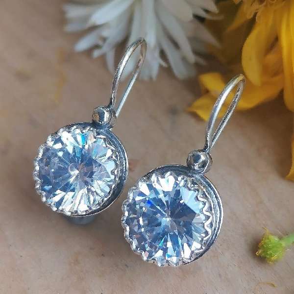 Серьги из серебра 925 пробы, вставка кубический циркон. Диаметр аметиста 9 мм. Длина серег с дужкой 25 мм. Средний вес изделия 5,1 гр. Производство Израиль.