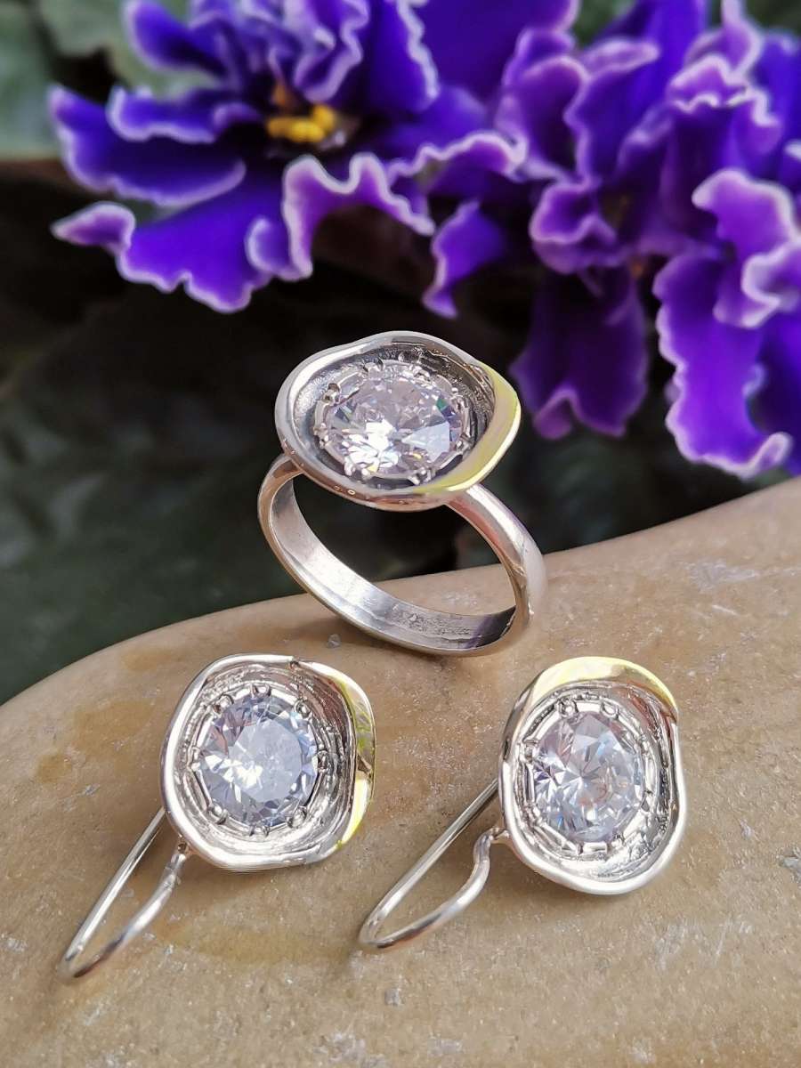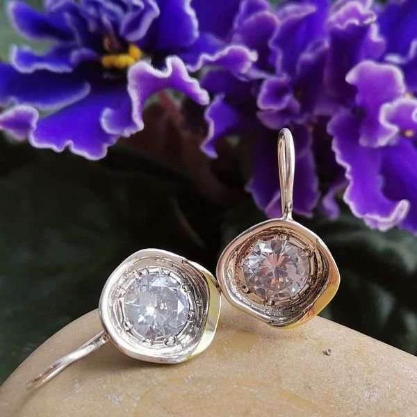 Серьги из серебра 925 пробы, вставка куб.циркон, пластина из золота. Размер вставки циркон 8 мм. Диаметр художественного элемента 14 мм. Длина серег 22 мм. Средний вес изделия 4,4 гр. Производство Израиль.