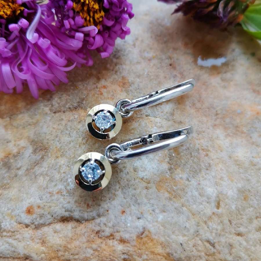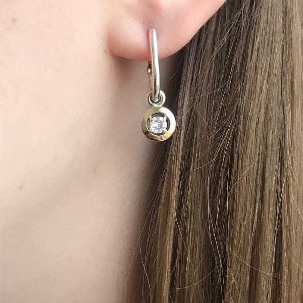 Серьги из серебра 925 пробы, вставка куб.циркон, пластина из золота. Диаметр вставок 3,5 мм. Диаметр подвижной части 8 мм. Длина серег 27 мм. Средний вес изделия 4,6 гр. Производство Израиль.
