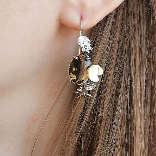 Серьги из серебра 925 пробы, вставки: кубический циркон , золотая пластина. Размер вставки 14х10 мм. Длина серег с дужкой 40 мм. Размер художественного элемента 30х15 мм. Средний вес изделия 8,27 гр. Производство Израиль.