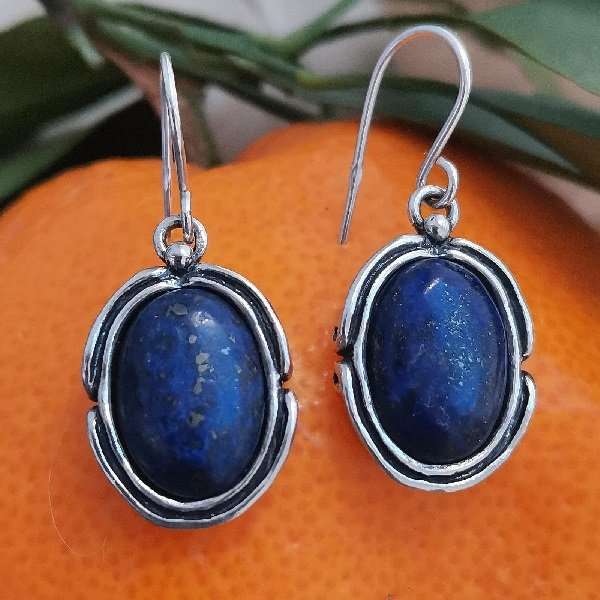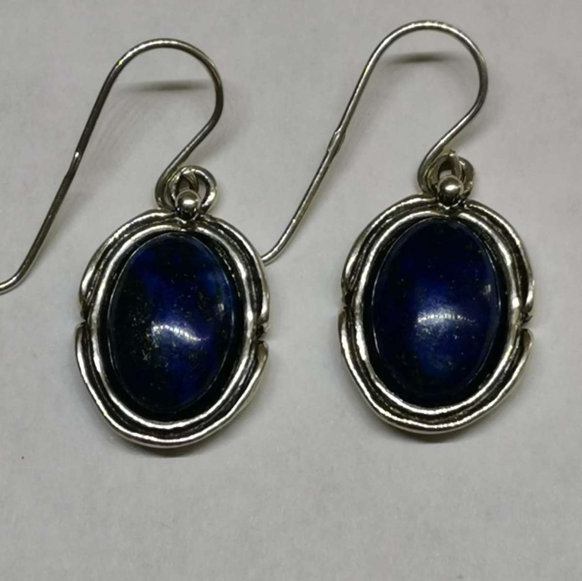 Серьги из серебра 925 пробы, вставка граненый лазурит. Размер вставки 14х10 мм. Длина серег с петлей 32мм. Художественный элемент 17х14 мм. Средний вес изделия 6,7 гр. Производство Израиль.
