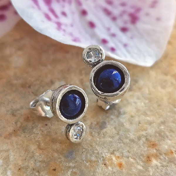 Серьги из серебра 925 пробы, вставка лазурит, куб.циркон. Диаметр: бирюза 5 мм, куб.циркон 2 мм. Длина серег 15 мм. Средний вес изделия 2 гр. Производство Израиль.
