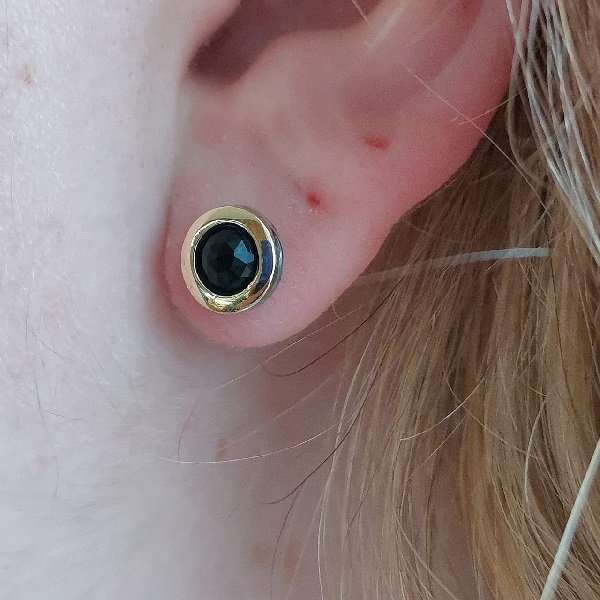 Серьги из серебра 925 пробы. Вставка оникс, пластина из золота. Диаметр вставки 5 мм. Длина серег 15мм, диаметр декоративной части 8 мм. Средний вес изделия 2,4 гр. Производство Израиль.