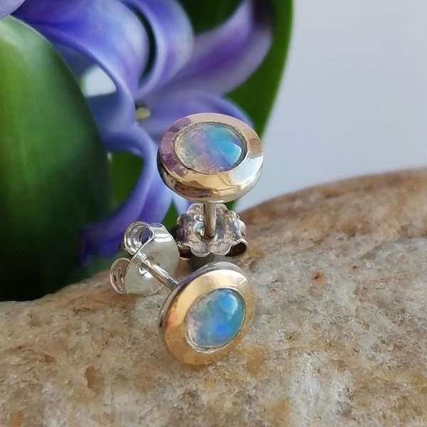 Серьги из серебра 925 пробы. Вставка Эфиопский опал, пластина из золота. Диаметр вставки 5 мм. Длина серег 15мм, диаметр декоративной части 8 мм. Средний вес изделия 2,02 гр. Производство Израиль.