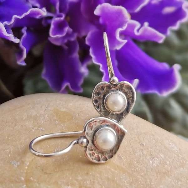 Серьги из серебра 925 пробы, вставка жемчуг. Диаметр вставки 3 мм. Длина серег с дужкой 21 мм. Размер художественной части 10х10 мм. Средний вес изделия 1,9 гр. Производство Израиль.