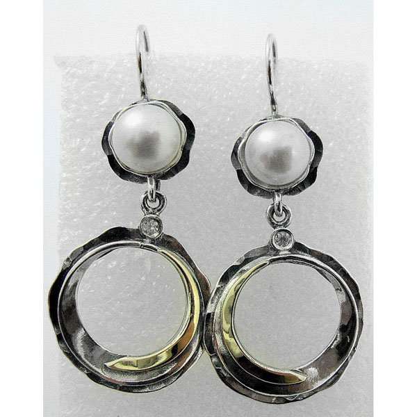 Серьги из серебра 925 пробы, вставки:жемчуг 6 мм., кубический циркон 2 мм., золотая пластина. Длина серег 47 мм, Ширина дуги 20 мм. Средний вес изделия 6,31гр. Производство Израиль.