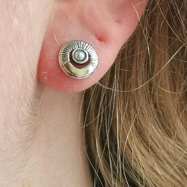 Серьги из серебра 925 пробы, вставка жемчуг, золото. Размер вставки 2,5 мм. Диаметр художественного элемента 7 мм. Длина штифта 10 мм. Средний вес изделия 1,22 гр. Производство Израиль.