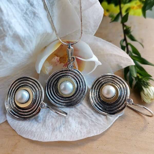 Серьги из серебра 925 пробы, вставка жемчуг, куб.циркон, пластина из золота. Диаметр вставки жемчуг- 6 мм, куб.циркон-2мм. Длина серег с дужкой 30 мм, ширина 20 мм. Средний вес изделия 6,5 гр. Производство Израиль.