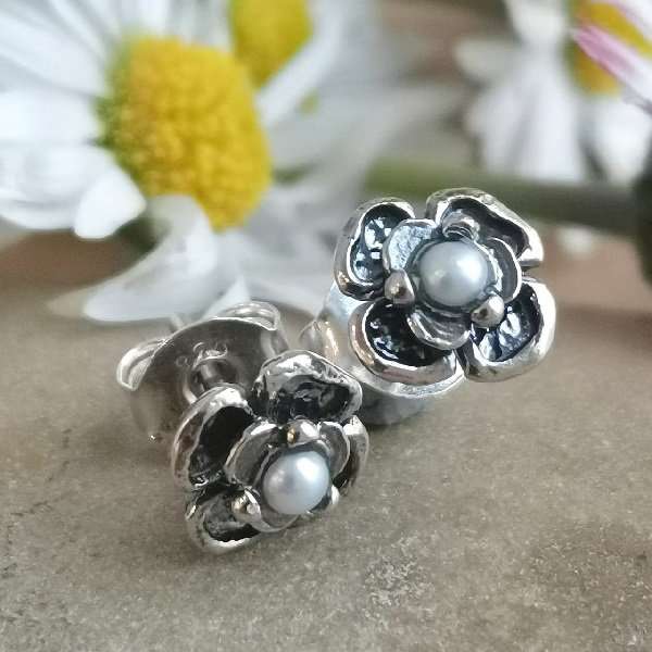 Серьги из серебра 925 пробы, вставка жемчуг. Размер вставки 2 мм. Диаметр художественного элемента 8 мм. Длина штифта 10 мм. Средний вес изделия 1,1 гр. Производство Израиль.