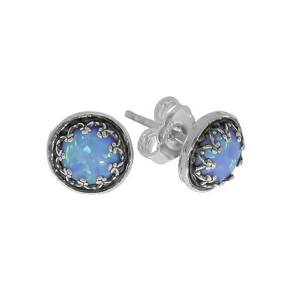 Серьги из серебра 925 пробы, вставка искусственный опал. Диаметр вставки 6 мм. Диаметр серег 8 см. Средний вес изделия 2,2 гр. Производство Израиль.