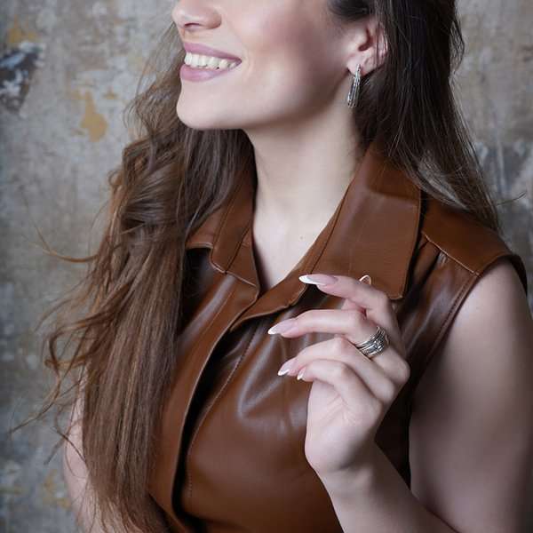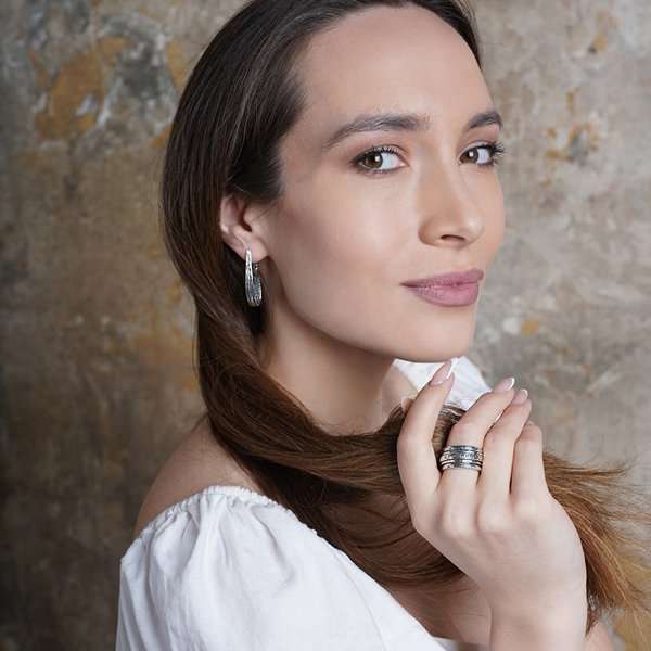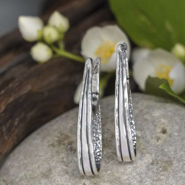 Серьги из серебра 925 пробы. Ширина узкой части 3 мм, широкой - 6 мм Длина серег 35 мм. Средний вес изделия 6,8 гр. Производство Израиль.